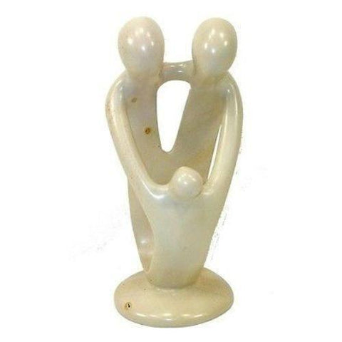 African Soapstone is among the most beautiful in the world. Mined by hand from surface mines large stones are pulled by a team of workers, cleaved into smaller pieces and worked into stunning art and functional objects. This sculpture depicts a stylized family. The soapstone is natural. Please allow for color variation from cream to pink to gray in any...