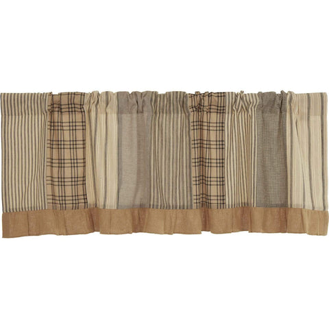 Dress up your window with the Farmhouse inspired 19x72 Sawyer Mill Charcoal Patchwork Valance with its vertical strips of ash grey, creme, black plaid and striped patches. The valance is finished with a hem fold and the bottom and trimmed with a 3 inches natural burlap gathered ruffle.Features PREMIUM CONSTRUCTION: with over two decades experience crafting goods for American homes,...