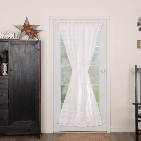 The White Ruffled Sheer Petticoat Door Panel combines light and airy, sheer fabric with multi-tiered frills to create a perfect balance of sophistication and playfulness. This flirty all-cotton curtain dresses any room with a refined, delicate sense. Their double-sided ruffles mimic those found on old-fashioned petticoats, giving them a hint of country glamour. This 72x40 farmhouse door panel includes a...