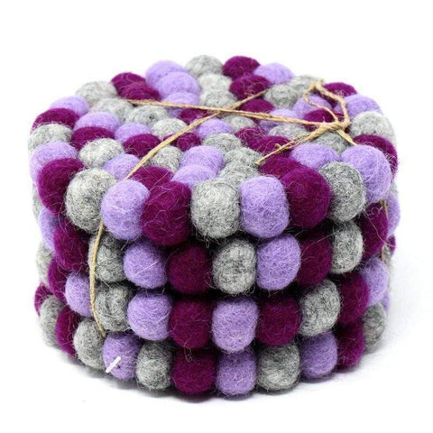 Slide these felted coasters under your glasses for protection of your table while adding a fun pop of seasonal color! Each measures 4 inches in diameter. Handmade in Nepal. Meet the Artisans Global Groove is a fair trade organization working with women by supporting and developing artisan co-ops in Thailand and Nepal. The Fair Trade industry is expanding and we...