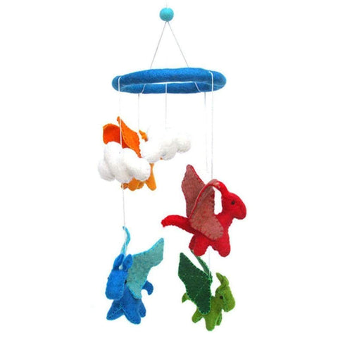 Made by Nepalese artisans, this felt mobile feature dragons and clouds and hangs about 20 inches.Meet the Artisans Global Groove is a fair trade organization working with women by supporting and developing artisan co-ops in Thailand and Nepal. The Fair Trade industry is expanding and we are proud to be a part of a sustainable movement that is changing lives....