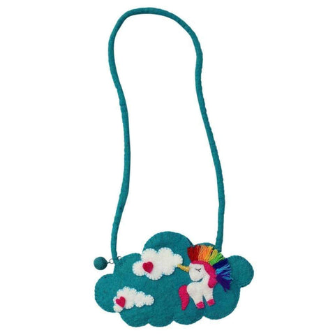 So darn cute, this felt bag featuring a unicorn is handmade by Nepalese women artisans from 100% all-natural felted wool, The lined purse with zipper closure measures 11.5 inches by 7 inches and has a 21-inch long felted drop strap.Meet the Artisans Global Groove is a fair trade organization working with women by supporting and developing artisan co-ops in Thailand...