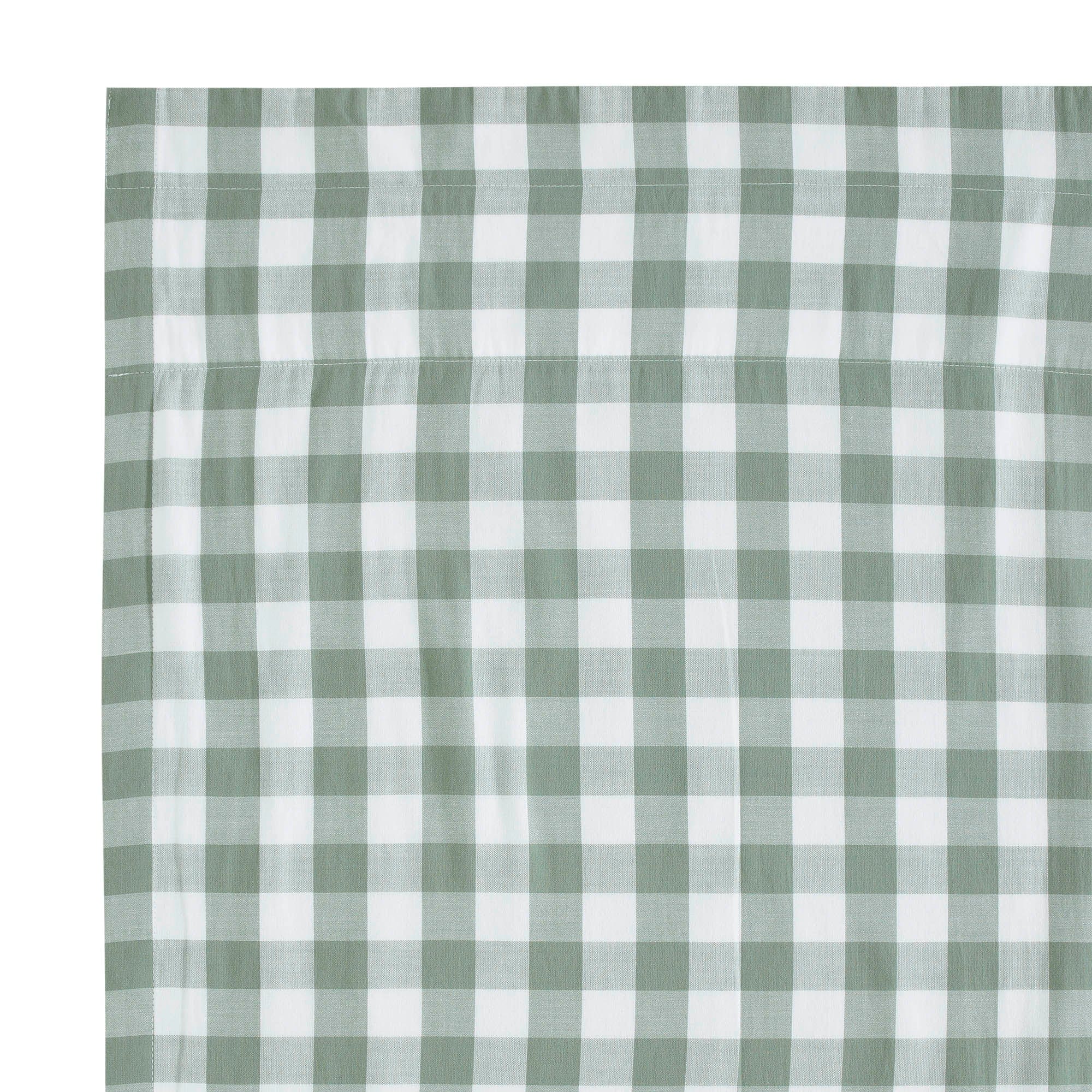 Create a clean, modern farmhouse look with our Annie Buffalo Green Check Short Panel Set. The charming 63 x 36 inch curtains feature charming sage green and white checkered plaid in a textured, woven fabric made with 100% cotton. Lined to prevent fading and to provide additional privacy. Features rod pockets and loops for easy hanging. Includes matching tie backs.