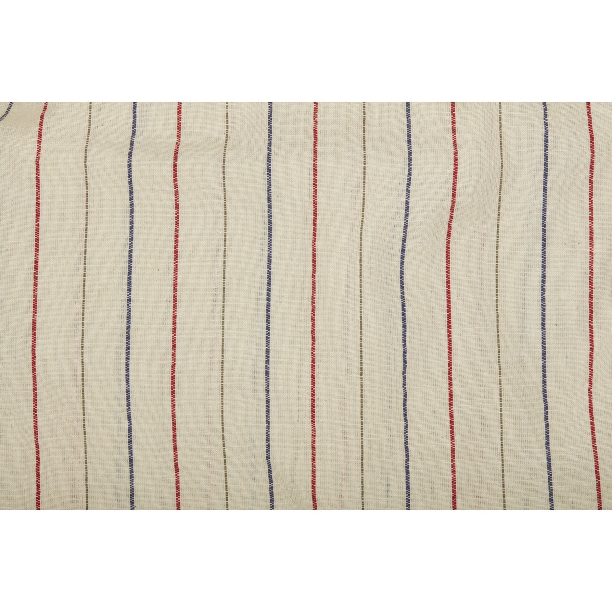 Add sweet simplicity to your farmhouse bedroom with the easy-going, casual style of Betsy Stripe Bed Skirt. The cream fabric is dressed up in thin vertical stripes of red, blue, and gray in a design that echoes a love of flag and country with innovative, understated style. The relaxed cotton weave with a slightly slubbed appearance, occasional raised threads and the chalk stripes bring a crisp regularity that has fresh graphic appeal. Add these luxurious layers of ruffles to dress up your bed. Queen Bedskirt Dust Ruffle, 60W x 80L decking, with a 16 inch drop from the top of the boxspring to the floor. Visit our Piper Classics Store to find coordinating items from our Betsy, Abigail, Lydia Blue or Vintage Check Blue collections. All contain matching fabrics that will complete your ensemble. see link above or below product name. Traditional gathered ruffles on 3 sides of the bed. Split corners with a 3 inch overlap on corners of dust ruffle. 100% lightweight, breathable cotton skirt and deck fabric in a cream fabric with red, blue & gray thin chalk stripes on a cream base. The material is a relaxed cotton weave.