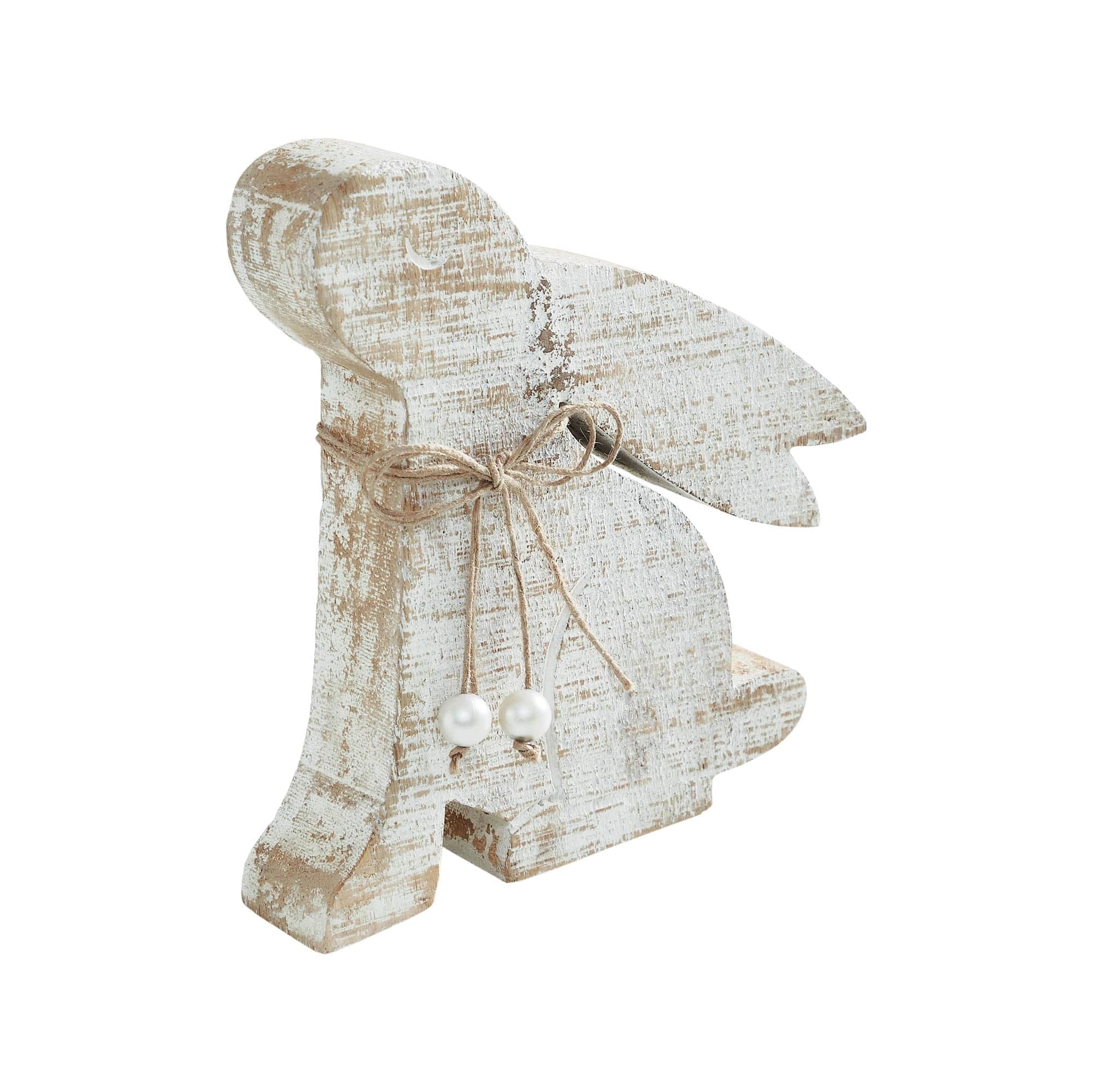 Bunny Hop Wooden Sitting Bunny Looking Up w/ Pearl Beads 8x7.5x1.5