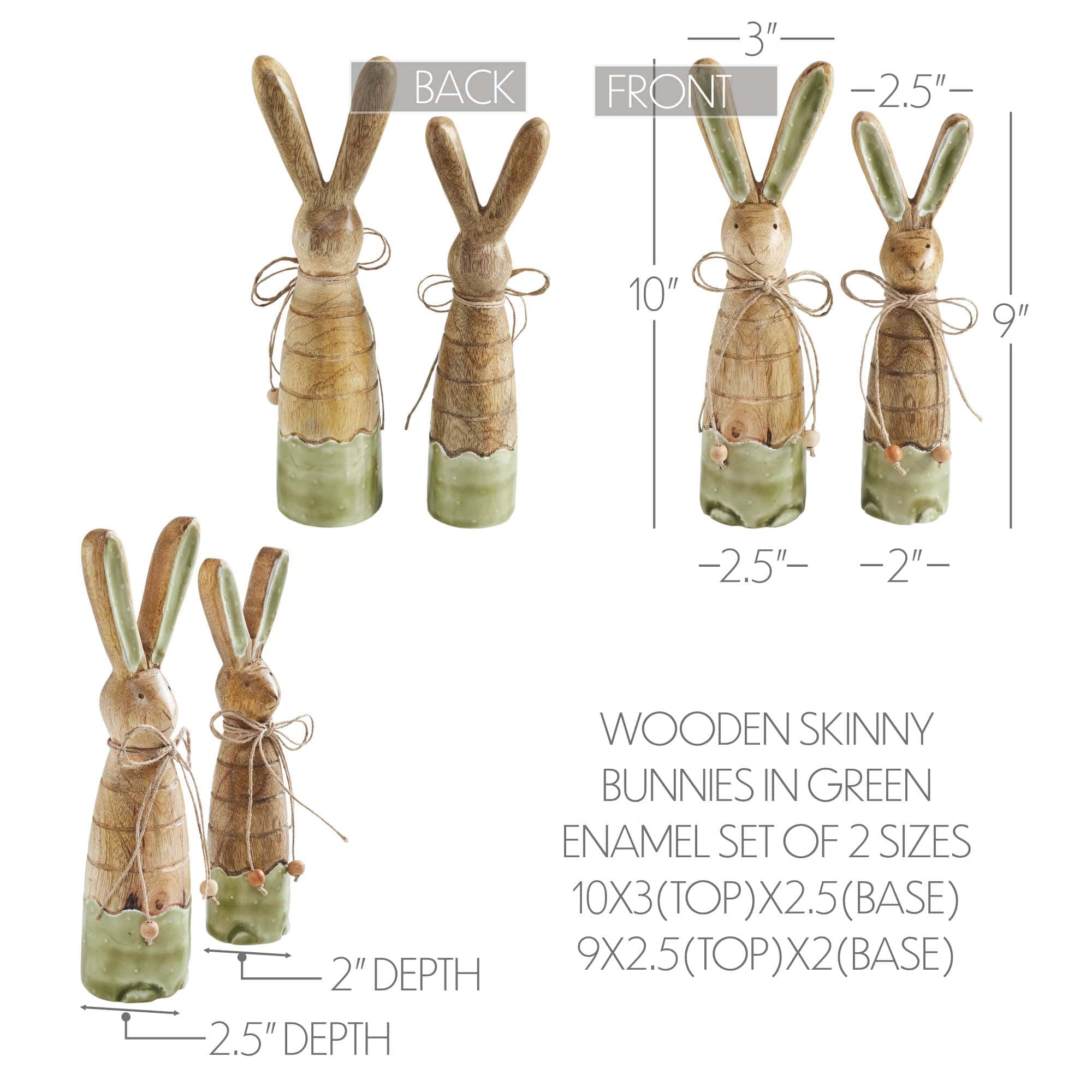Bunny Hop Wooden Skinny Bunnies In Green Enamel Set of 2 Sizes