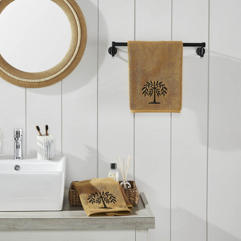 Enhance your bathroom's rustic charm with the VHC Brands Black Willow Tree Tan Hand Towel Set of 2. Made from soft and absorbent cotton terrycloth, these towels are designed for both functionality and style. The neutral doe tan color provides a warm, natural base, while the embroidered black willow tree at the bottom adds a touch of primitive elegance, making...