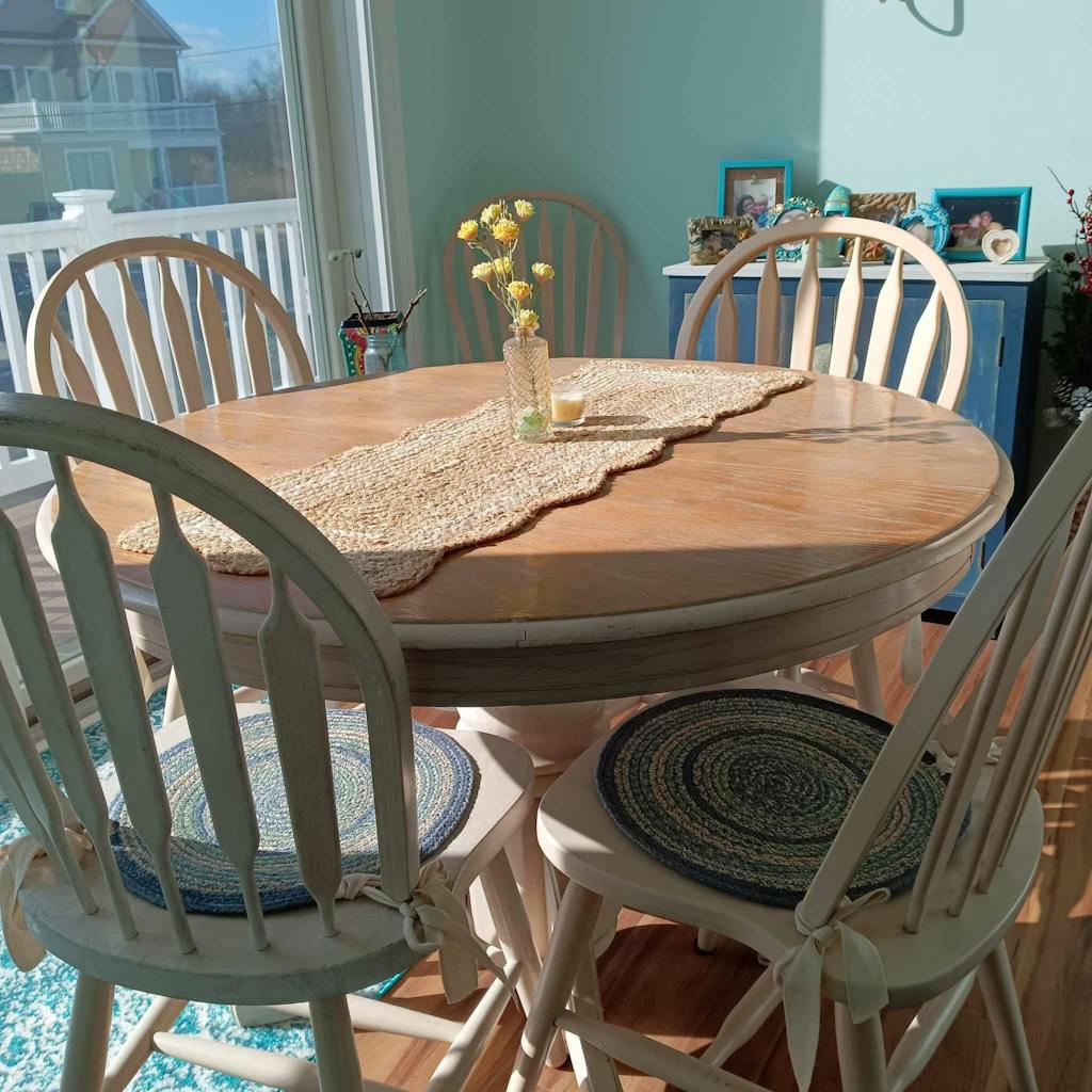 Hi Debra, thank you for your review! We are so glad to hear that you are enjoying your new Great Falls Blue Jute Chair Pads. It's always exciting to see how a simple addition can enhance the overall look of a room. Thank you for choosing our product for your dining room redecoration. Happy decorating!