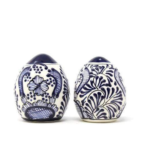 This traditional Mexican pottery is crafted and hand painted by artisans in Mexico using traditional pottery technique. Each piece is highly textured and unique -- these pieces are gorgeous, yet very functional. One shaker features 5 holes and the other a single hole at the top, allowing for versatility and usability. Lead-free and dishwasher safe. Any minor variances in the...