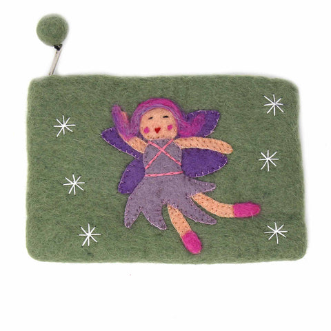 Starlight dancing with our Fairy pouch. Roomy enough for your phone, too! Handmade by women artisans in Nepal. Zipper top with Pom-Pom pull. Fully lined. Measures approximately: 8.25 inches x 5.15 inches. 100% All Natural New Zealand Wool. Azo-free dyes. Due to the handmade nature, slight variations in size, exact color, shape, pattern, or other characteristics may be evident. Each...