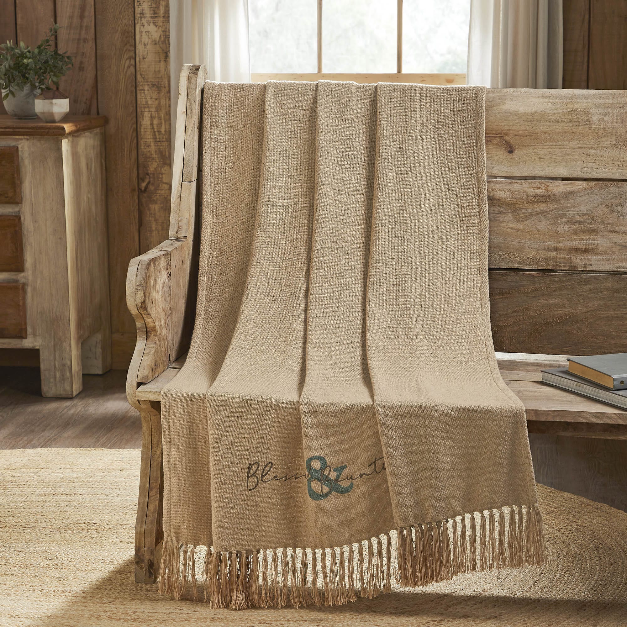 • Introducing the VHC Brands Harvest Blessings Blessed & Bountiful Woven Throw, a charming addition to your fall and Thanksgiving decor, meticulously crafted from a blend of cotton and polyester for softness and durability.