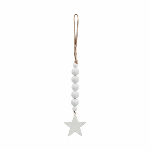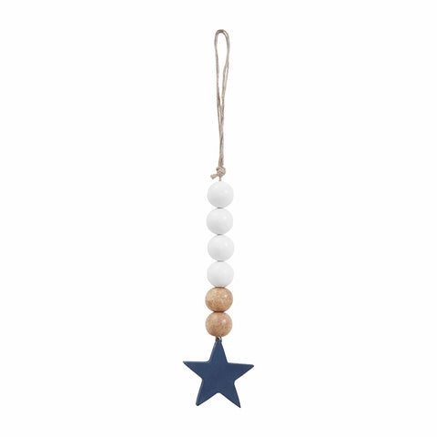 Add a touch of timeless Americana charm to your home with the VHC Brands Patriotic Beads & Star Ornament 6x2. This elegant ornament features a hanging strand of seven various-sized beads, leading to a striking 5-point star in bright white. Its clean, minimalist design blends rustic appeal with a touch of sophistication, making it a versatile addition to your Fourth...