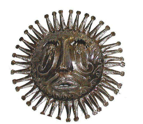 Made from steel drums by Haitian craftspeople in the section of Port-au-Prince, Haiti called Croix des Bouquets, this sun is three dimensional with a diameter of 10 inches. It has the natural patina that is prevalent in used oil drums rather than sheet metal. It has a small hook to hang the piece.Meet the Artisans Founded in 1990 by a...