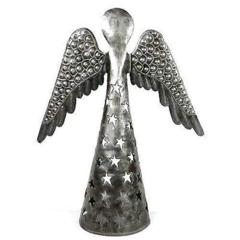 This 9-inch tall angel is handmade in Haiti from scrap steel drums and hand painted. Standing on its own, the angel is perfect for placing in front of a tea light.Meet the Artisans When you visit Croix des Bouquets, the area of town known for Haitian metal art in the capital of Port-Au-Prince, you are met with a cacophony of...
