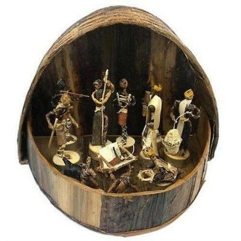 This Nativity set is handcrafted out of banana fiber wrapped on wire and includes a 10 by 7 inch handmade banana fiber box for storage and display. The tallest piece is 5 inches high. Meet the Artisans Esther Kariuki is an independent artisan who, in her area of Kenya, near Kitui, has organized and trained women in her village to...