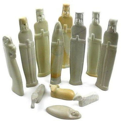 Hand carved from cream-colored soapstone in Kenya, this nativity set has 12 pieces, the tallest of which is 6 inches tall. Variations in color and design will occur due to the nature of the stone and the individual carver.Meet the Artisans Our Soapstone is carved by the artists of SMOLArt a group of artists who live in the rural village...