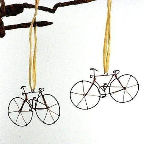 This set of two handmade wire bicycles, each with a raffia loop, make unique holiday ornaments. Each bicycle is approx 4 inches in size. Sold Individually. Called a "boda boda" by the locals, bicycles are used as public transportation (you ride on a padded rack on the back) and are named for the bicycles used to transport people across the...