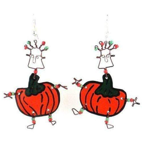This handmade novelty pair of dancing girl earrings features a playful pumpkin design made from recycled tin can and copper wire, accented with colorful Maasai beads. Earrings hang approximately 2 inches.Meet the ArtisansCreative Alternatives works with marginalized producers in rural and urban areas of Kenya. The producers take pride in the product ideas they are able to develop and market...