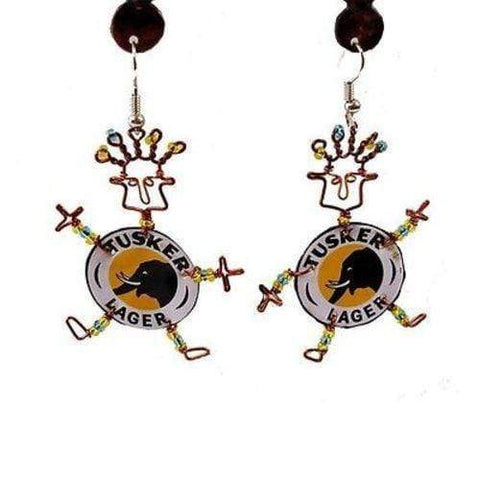 Delightful dancing girl earrings with bodies of Tusker lager bottle caps are accented with copper wire and colorful Maasai beads. Earrings hang approximately 1.5 inches from lead free silver metal hooks. Bead colors will vary.Meet the ArtisansCreative Alternatives works with marginalized producers in rural and urban areas of Kenya. The producers take pride in the product ideas they are able...