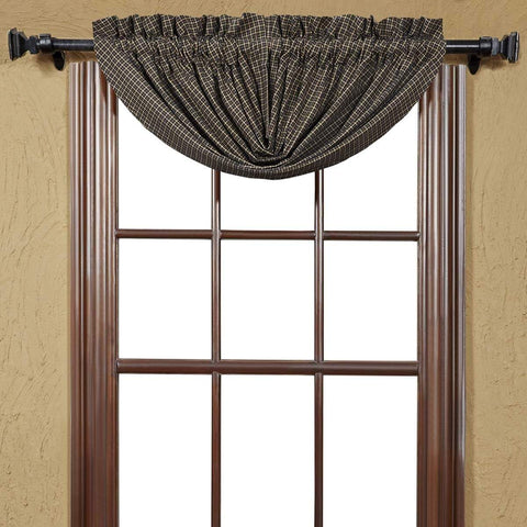 Bring a primitive look to any window with the Kettle Grove Plaid Balloon Valance with its black and tan micro check fabric.Features PREMIUM CONSTRUCTION: with over two decades experience crafting goods for American homes, our item are built to last for years to come. PRIMITIVE DECOR: traditional style that compliments any primitive or Americana home. QUALITY MATERIAL: made with durable...