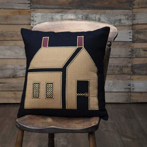 The 18x18 Primitive House Pillow is a warm welcome anywhere you place it. The centered mustard plaid house is appliqued on a black felt base with cross stitch and a wooden button door knob. The burgundy plaid chimneys contribute to the homespun feel. Reverses to solid black felt with 2 tie closures.Features PREMIUM CONSTRUCTION: with over two decades experience crafting...