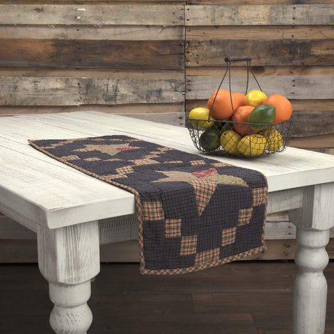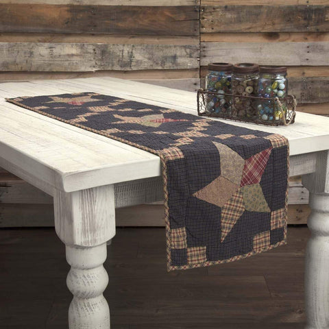 Give your dining table an rural Americana inspired look with the Arlington Runner Quilted Patchwork Star 13x36. Featuring burgundy plaid checkered borders framing two 5 point star on navy plaid.Features PREMIUM CONSTRUCTION: with over two decades experience crafting goods for American homes, our item are built to last for years to come. PRIMITIVE DECOR: traditional style that compliments any primitive...