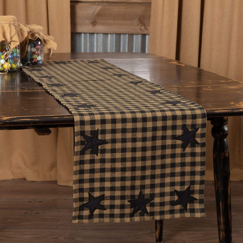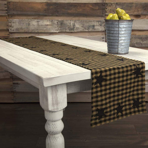 Dress your kitchen table with a classic primitive touch. The 13x48 Black Star Runner Woven showcases classic check pattern, decorated with solid colored appliqued stars around outside edge. Finished with a self-binding on the bias to complete the look.Features PREMIUM CONSTRUCTION: with over two decades experience crafting goods for American homes, our item are built to last for years to...