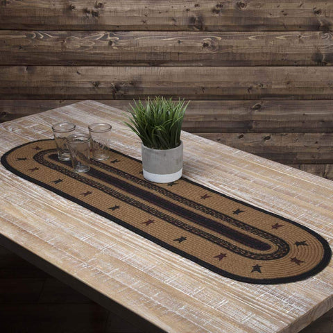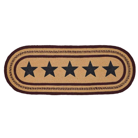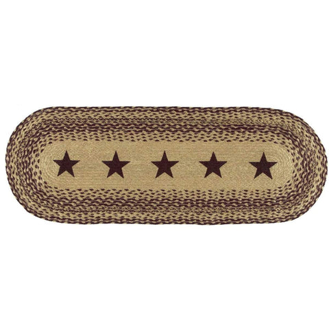 The Heritage Farms Star Jute Runner Oval 13x36 lifts its colors from the bedding set to complete a quietly primitive look throughout the entire house. A ring of star stenciling on jute adds a homey flair to this runner.Features PREMIUM CONSTRUCTION: with over two decades experience crafting goods for American homes, our item are built to last for years to...
