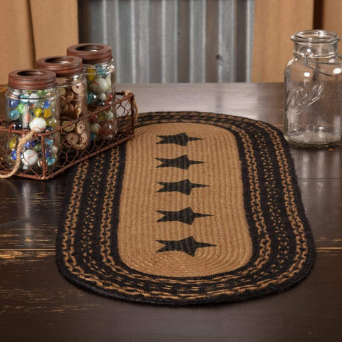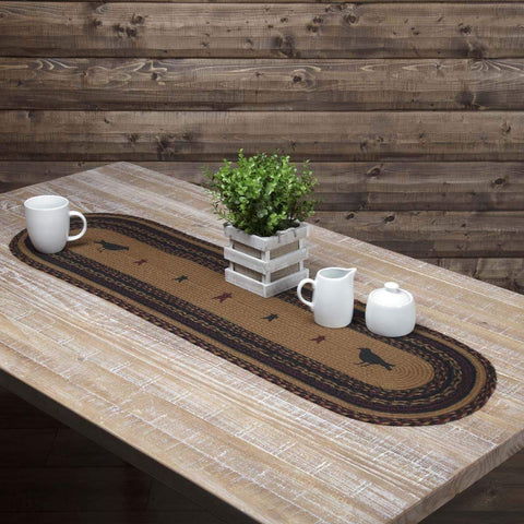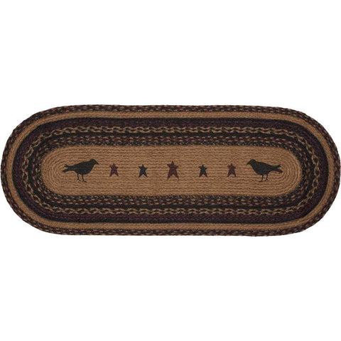The Heritage Farms Crow Jute Runner Oval 13x36 lifts its colors from the bedding set to complete a quietly primitive look throughout the entire house. Crow stenciling bookending primitive stars adds a homey flair to this runner.Features PREMIUM CONSTRUCTION: with over two decades experience crafting goods for American homes, our item are built to last for years to come. PRIMITIVE...