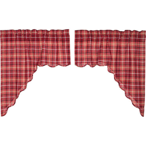 Traditional American plaid, the Braxton Swag Set showcases apple red, natural, and ebony plaid on all cotton with scalloped edge. Lined with white cotton.Features PREMIUM CONSTRUCTION: with over two decades experience crafting goods for American homes, our item are built to last for years to come. PRIMITIVE DECOR: traditional style that compliments any primitive or Americana home. QUALITY MATERIAL: made...