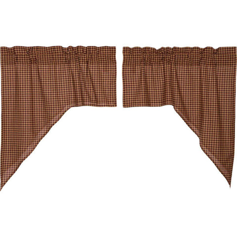 The Primitive Check Prairie Swag Set adds a darker rural look to any window with its large scale burgundy, mustard, and black check fabric all cotton. The set is lined in all white cotton and includes drawstring ties.Features PREMIUM CONSTRUCTION: with over two decades experience crafting goods for American homes, our item are built to last for years to come....