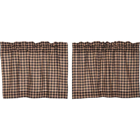 The Primitive Check Tier Lined Set of 2 L36xW36 adds a darker rural look to any window with its large scale burgundy, mustard, and black check fabric all cotton. The set is lined in all white cotton.Features PREMIUM CONSTRUCTION: with over two decades experience crafting goods for American homes, our item are built to last for years to come. PRIMITIVE...