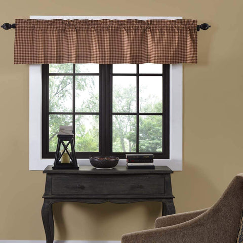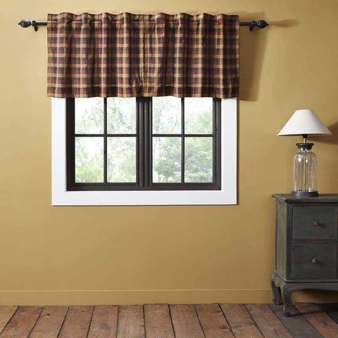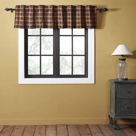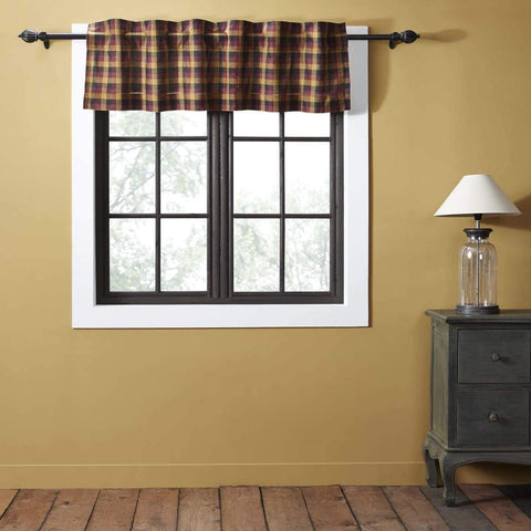 The Primitive Check Valance Lined 16x72 adds a darker rural look to any window with its large scale burgundy, mustard, and black check fabric all cotton. The set is lined in all white cotton.Features PREMIUM CONSTRUCTION: with over two decades experience crafting goods for American homes, our item are built to last for years to come. PRIMITIVE DECOR: traditional style...