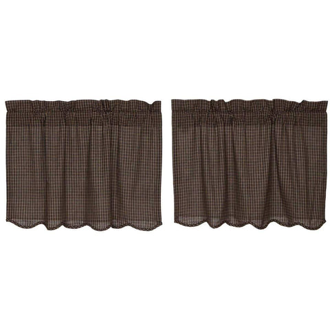 Bring a primitive look to any window with the Kettle Grove Plaid Prairie Swag Scalloped Set with its black and tan micro check fabric. Includes drawstring ties.Features PREMIUM CONSTRUCTION: with over two decades experience crafting goods for American homes, our item are built to last for years to come. PRIMITIVE DECOR: traditional style that compliments any primitive or Americana home....
