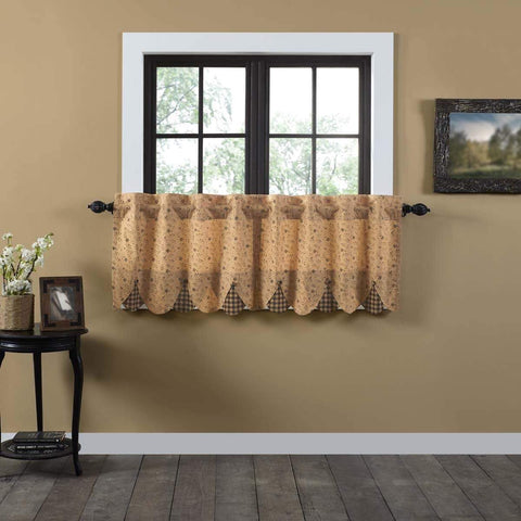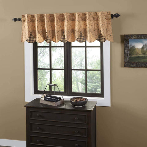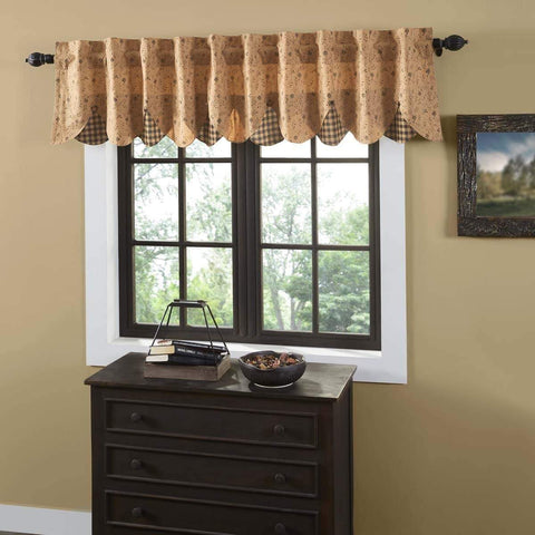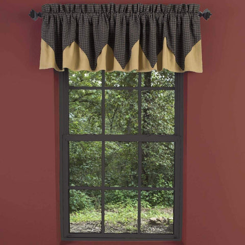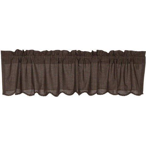 Bring a primitive look to any window with the Kettle Grove Plaid Valance Scalloped 16x60. This primitive curtain features black and tan plaid, lined with cotton and finished with a scalloped edge for a special, classic touch. Features PREMIUM CONSTRUCTION: with over two decades experience crafting goods for American homes, our item are built to last for years to come....