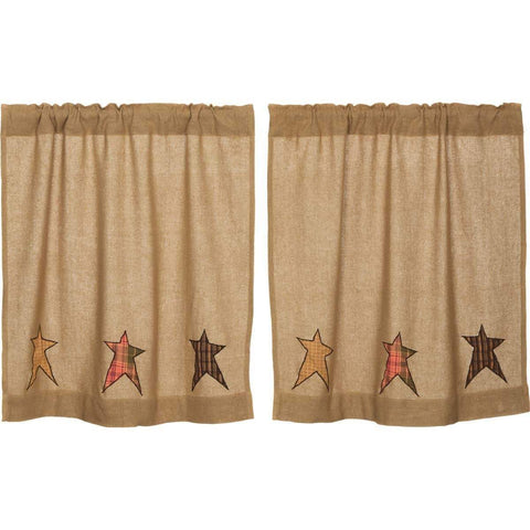 Burlap Natural Tier Black Stencil Stars Set of 2 L36xW36 features natural burlap with a rod pocket that measures 3.25 inch in height which allows for a wide variety of hardware to be used.Features PREMIUM CONSTRUCTION: with over two decades experience crafting goods for American homes, our item are built to last for years to come. PRIMITIVE DECOR: traditional style...