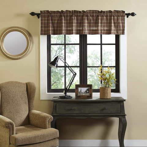 Traditional American plaid, the Braxton Valance showcases apple red, natural, and ebony plaid on all cotton with scalloped edge. Lined with white cotton.Features PREMIUM CONSTRUCTION: with over two decades experience crafting goods for American homes, our item are built to last for years to come. PRIMITIVE DECOR: traditional style that compliments any primitive or Americana home. QUALITY MATERIAL: made with...