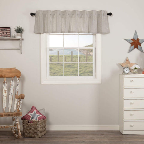 Perfect for coordinating with your primitive, country style decor, the Patriotic Patch Star Block Valance Pleated 20x60 is a great addition to any window in your home. This country curtain features rustic colors of deep red, khaki, and navy on 100% cotton, lined fabric while beautifully showcasing primitive Americana stars. Includes hanging Loops, and a rod pocket for easy hanging.Features...