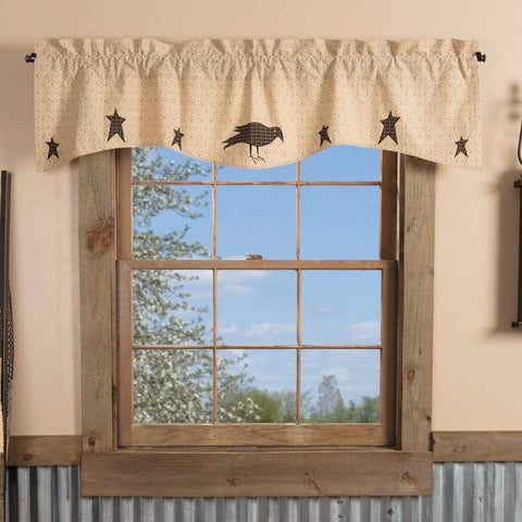 Go for a down to earth classic country look with our new Kettle Grove Applique Crow and Star Valance featuring a traditional favorite primitive star and black crow design with black and tan plaid on our antique inspired ditsy flower print. Bottom edge detailed with larger scale scallop.Features PREMIUM CONSTRUCTION: with over two decades experience crafting goods for American homes,...