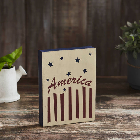 Introducing the VHC Brands Patriotic Let Freedom Ring Wooden Block, a captivating addition to your Independence Day Decor. This 8x6x1.25-inch rectangular figurine is crafted from printed tropical wood, providing a unique blend of rustic charm and patriotic flair. The dark creme, faded blue and burgundy finish enhances its country-inspired aesthetic, making it a versatile choice for various rooms, including the...