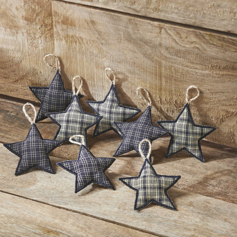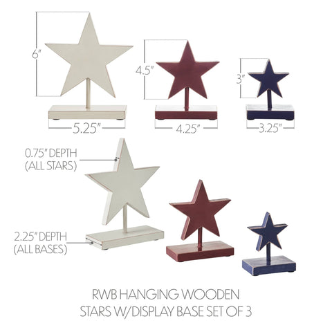 Elevate your Independence Day Decor with the VHC Brands Patriotic RWB Hanging Wooden Stars. This delightful set of three printed MDF figurines features intricate star designs, capturing the essence of Americana with a timeless appeal. Each star showcases a classic dark creme, faded blue or burgundy finish, providing a rustic touch to any space, whether it's the bathroom, bedroom, dining...