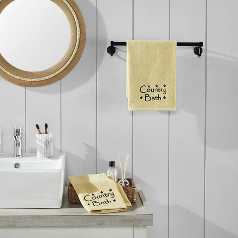 Add a farmhouse touch to your bathroom with the VHC Brands Navy Country Bath Stars Creme Bath Towel Set of 2. These soft and absorbent cotton terrycloth towels are designed for both comfort and practicality. The warm soybean creme color provides a neutral backdrop, while the embroidered design at the bottom features rustic stars encircling the phrase Country Bath in...
