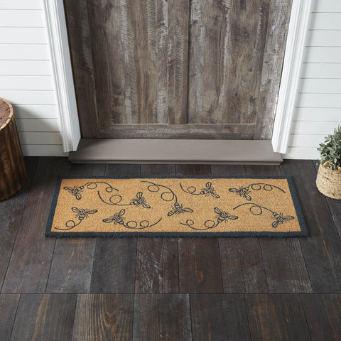 Welcome guests with the delightful charm of the VHC Brands Buzzy Bees Coir Welcome Rug Rect 17x48. This inviting doormat features whimsical dark grey bees flitting across a natural tan backdrop, creating a cheerful and warm greeting for your home. The design is highlighted by a subtle grey border, making it a perfect addition to any rustic or primitive-style entryway....