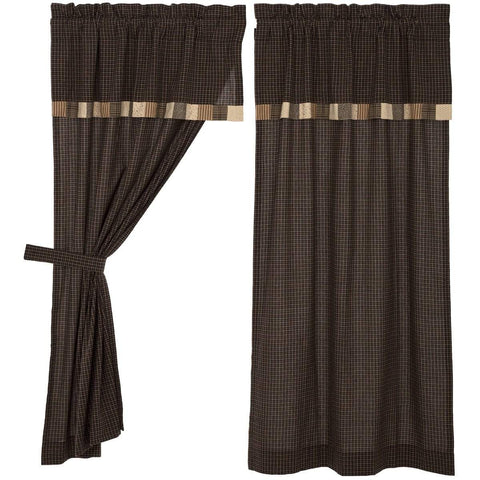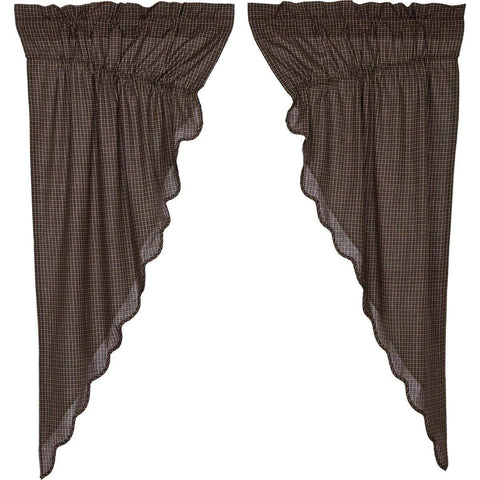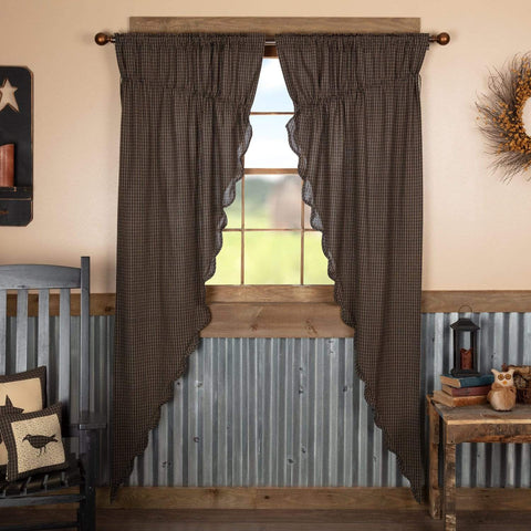 Bring a primitive look to any window with the Kettle Grove Plaid Prairie Curtain Scalloped Set with its black and tan micro check fabric. Includes drawstring ties.Features PREMIUM CONSTRUCTION: with over two decades experience crafting goods for American homes, our item are built to last for years to come. PRIMITIVE DECOR: traditional style that compliments any primitive or Americana home....