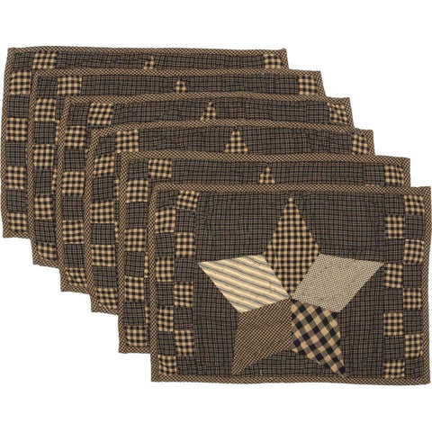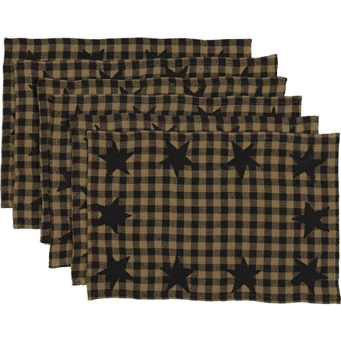 The Black Star Placemat Set offers a timeless black and tan check pattern and is beautifully decorated with black appliqued 5 point stars.Features PREMIUM CONSTRUCTION: with over two decades experience crafting goods for American homes, our item are built to last for years to come. PRIMITIVE DECOR: traditional style that compliments any primitive or Americana home. QUALITY MATERIAL: made with...