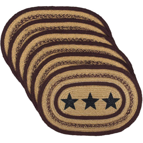 The Heritage Farms Star Jute Placemat Oval Set lifts its colors from the bedding set to complete a quietly primitive look throughout the entire house. A ring of star stenciling on jute adds a homey flair to this placemat.Features PREMIUM CONSTRUCTION: with over two decades experience crafting goods for American homes, our item are built to last for years to...