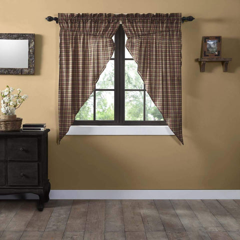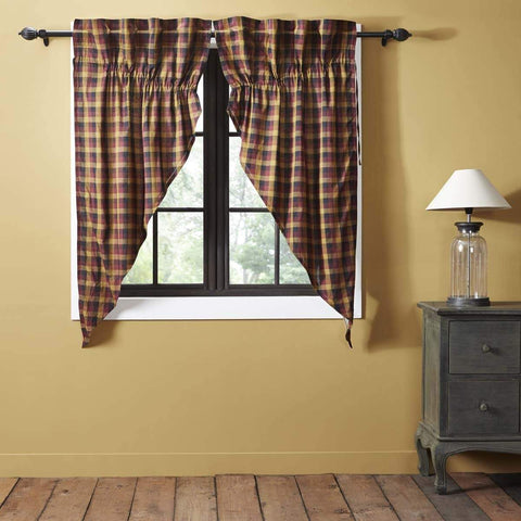 The Primitive Check Prairie Curtain Set adds a darker rural look to any window with its large scale burgundy, mustard, and black check fabric all cotton. The set is lined in all white cotton and includes drawstring ties.Features PREMIUM CONSTRUCTION: with over two decades experience crafting goods for American homes, our item are built to last for years to come....