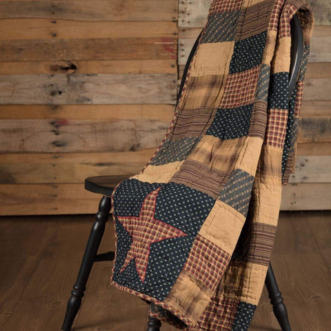 The hand quilted Patriotic Patch Throw features assorted patchwork blocks in traditional Americana colors of red, navy blue and tan.Features PREMIUM CONSTRUCTION: with over two decades experience crafting goods for American homes, our item are built to last for years to come. PRIMITIVE DECOR: traditional style that compliments any primitive or Americana home. QUALITY MATERIAL: made with durable 100% cotton...