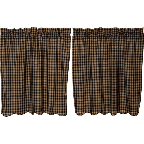 Black and khaki checks are blended with faded texture at points of intersection to give a modern facelift to the classic pattern on the Black Check Scalloped Prairie Curtain Set.Features PREMIUM CONSTRUCTION: with over two decades experience crafting goods for American homes, our item are built to last for years to come. PRIMITIVE DECOR: traditional style that compliments any primitive...