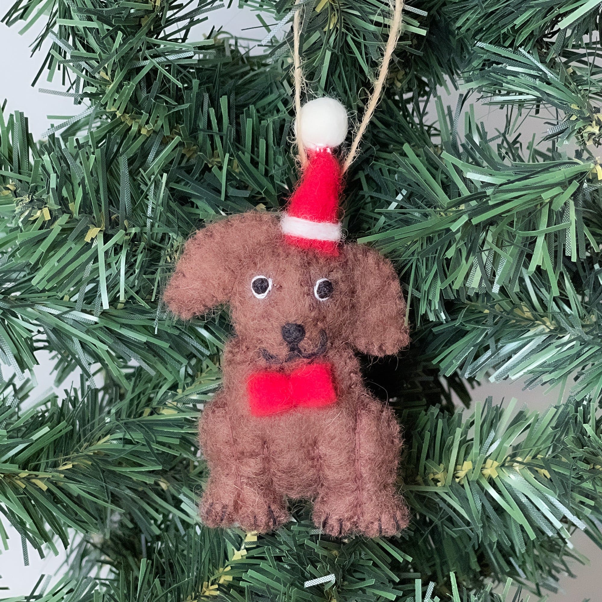 Have yourself a Happy Pawliday with our adorable eco-friendly wool felt Chocolate Labrador Retriever dog ornaments. These cute ornaments are intricately detailed and lovingly crafted by mother and sister artisans in Nepal.